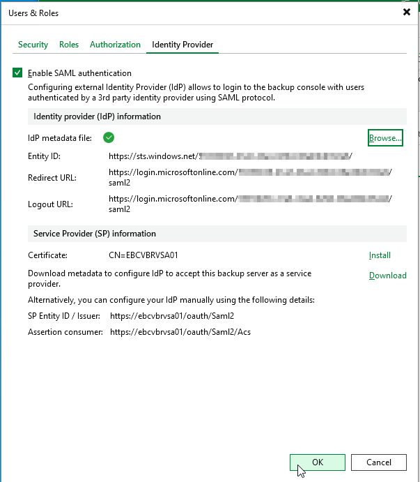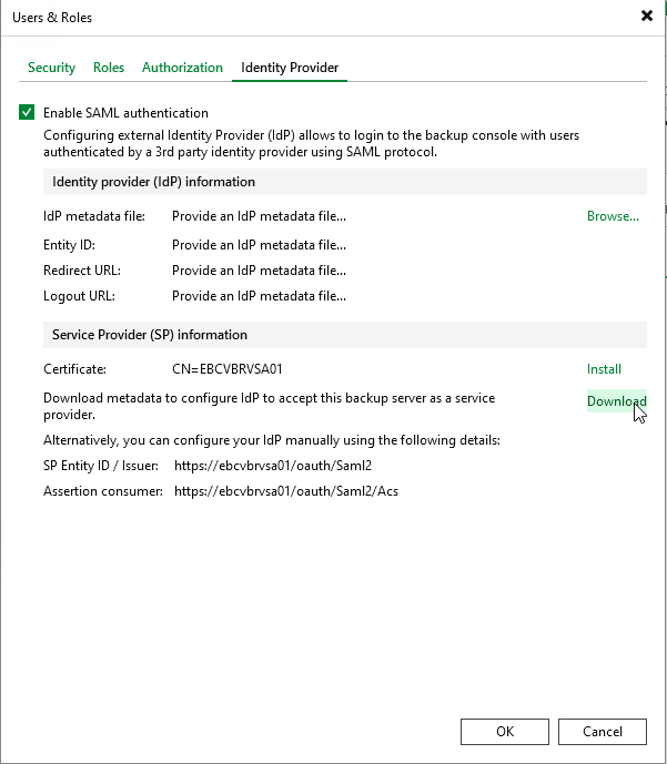 ⚡ Exchanging XML metadata between VBR and your identity provider for quick setup